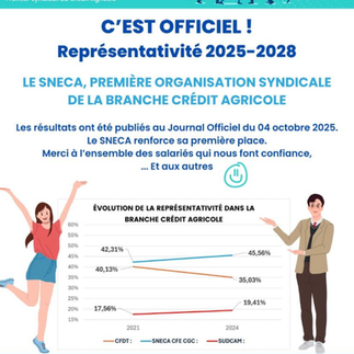 Le SNECA 1er 🥇 Syndicat du Credit agricoleSNECA5 nov. 20251 min de lectureMerci de votre confiance pour vous représenter